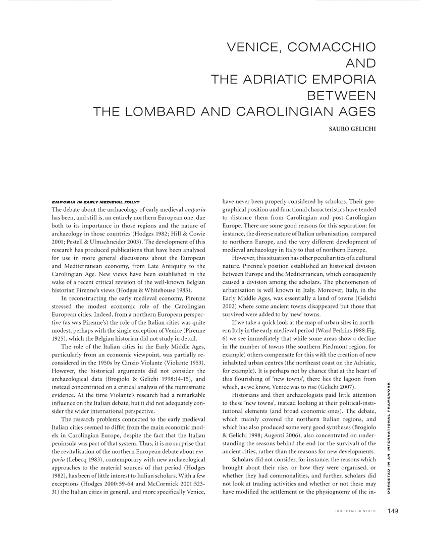Venice, Comacchio and the Adriatic Emporia between the Lombard and Carolingian Ages, Page 1 of 1