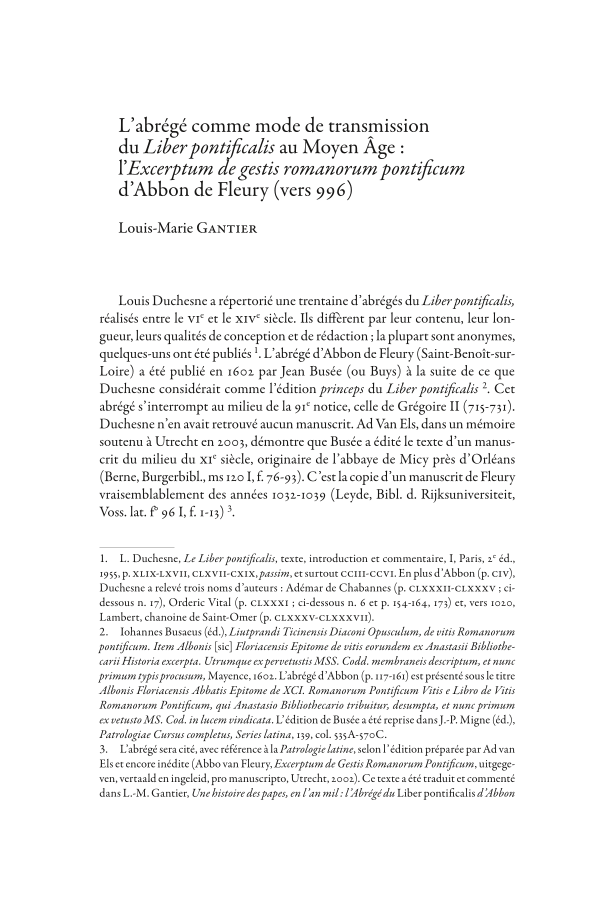 L’abrégé comme mode de transmission du Liber pontificalis au Moyen Âge: l’Excerptum de gestis romanorum pontificum d’Abbon de Fleury (vers 996), Page 1 of 1