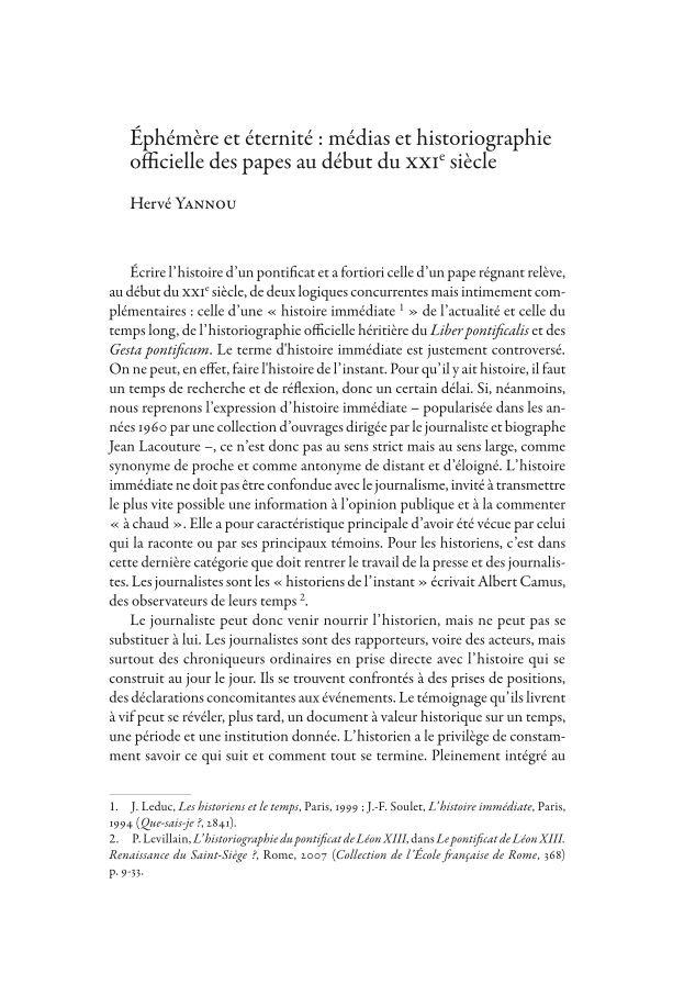 Éphémère et éternité: médias et historiographie officielle des papes au début du xxi e siècle, Page 1 of 1