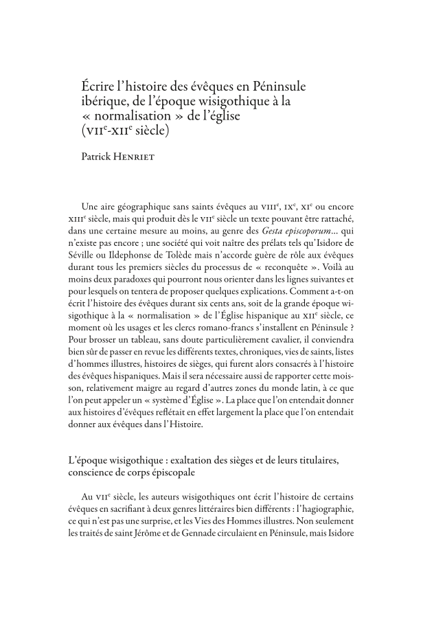 Écrire l’histoire des évêques en Péninsule ibérique, de l’époque wisigothique à la «normalisation» de l’Église (vii e-xii e siècle), Page 1 of 1