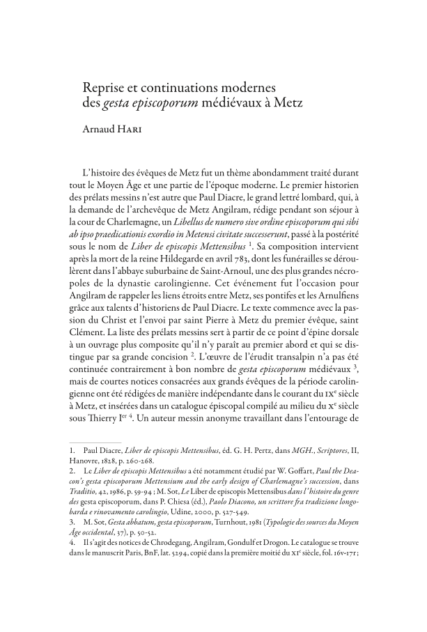Reprise et continuations modernes des gesta episcoporum médiévaux à Metz, Page 1 of 1