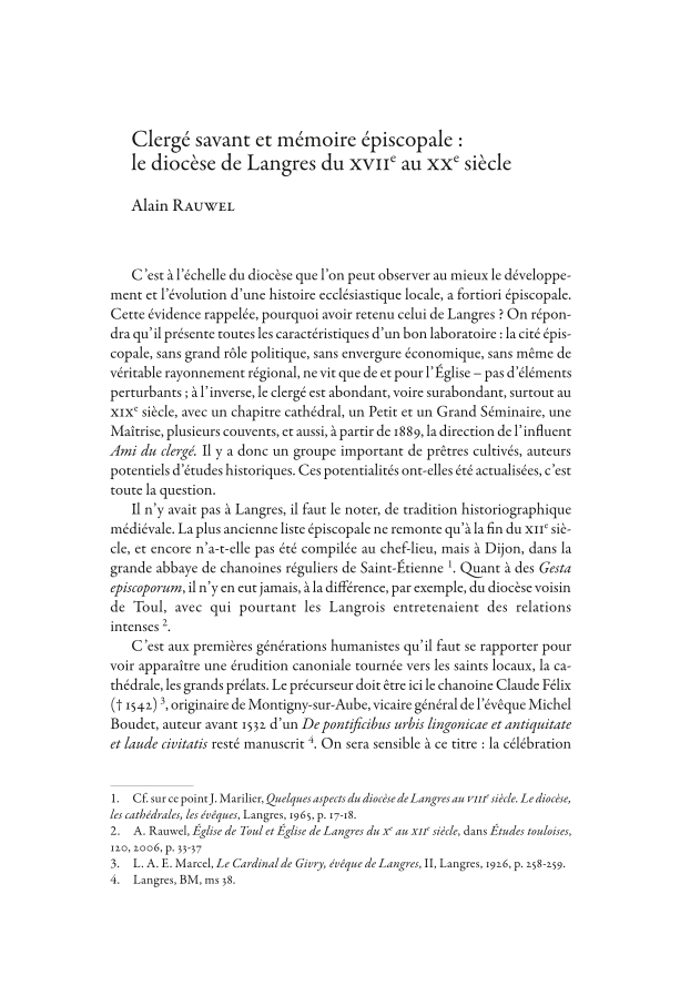 Clergé savant et mémoire épiscopale: le diocèse de Langres du xvii e au xx e siècle, Page 1 of 1
