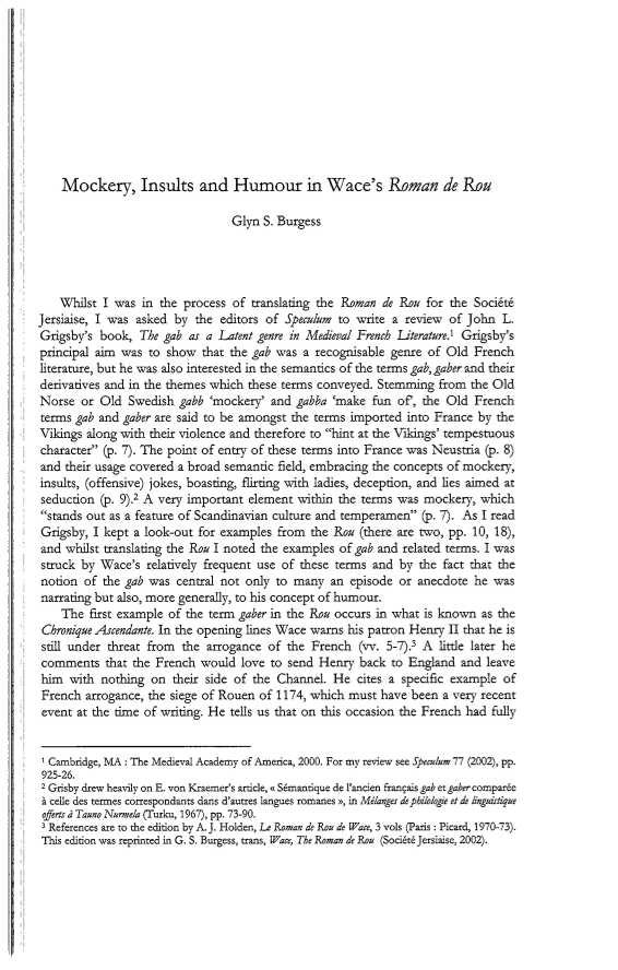 Mockery, Insults and Humour in Wace’s Roman de Rou, Page 1 of 1