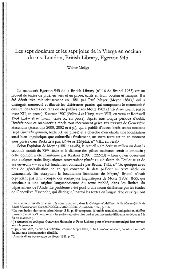 Les sept douleurs et les sept joies de la Vierge en occitan du ms. London, British Library, Egerton 945, Page 1 of 1