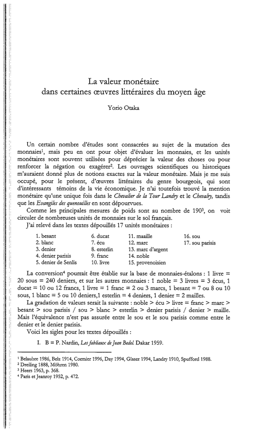 La valeur monétaire dans certaines œuvres littéraires du moyen âge, Page 1 of 1