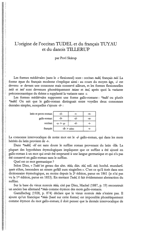 L’origine de l’occitan TUDEL et du français TUYAU et du danois TILLERUP, Page 1 of 1