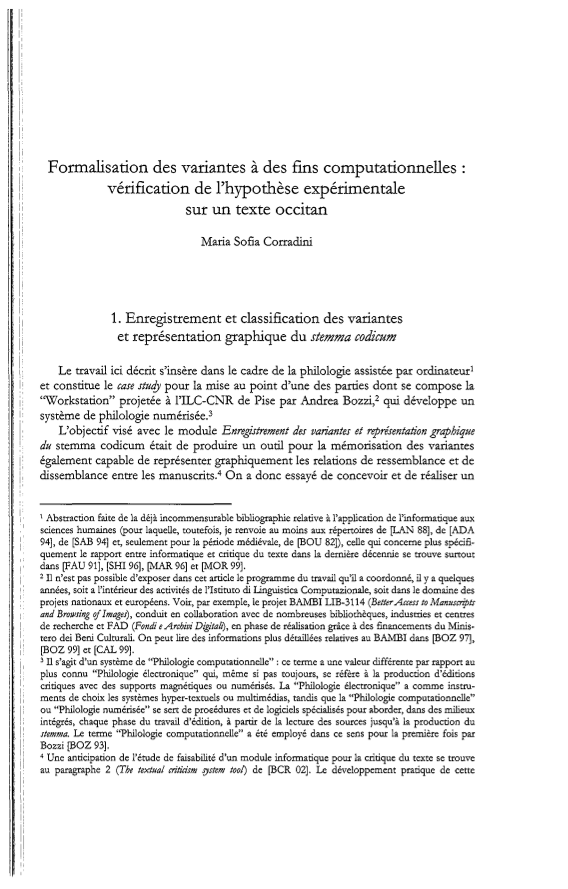 Formalisation des variantes à des fins computationnelles: vérification de l’hypothèse expérimentale sur un texte occitan, Page 1 of 1