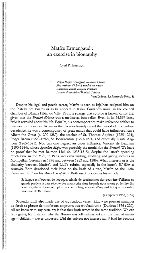 Matfre Ermengaud: an exercise in biography, Page 1 of 1