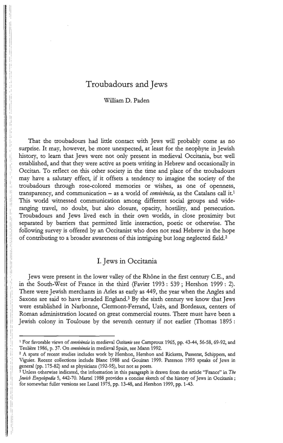 L’ouvrage est divisé en deux sections principales, la première étant consacrée aux textes non lyriques: roman, épopée et littérature religieuse; la seconde à la poésie des troubadours, soit naturellement à leur production lyrique, à ses sources et son influence, aux vidas qui accompagnent leur transmission, aux troubadours eux-mêmes, mais aussi à leur production non lyrique tels que textes proverbiaux et ensenhamens. Ces Mélanges incluent également quelques éditions de textes, quelquefois inédits. Leur ensemble constitue un panorama très complet des recherches actuelles, avec des avancées substantielles dans le domaine des études médiévales.
