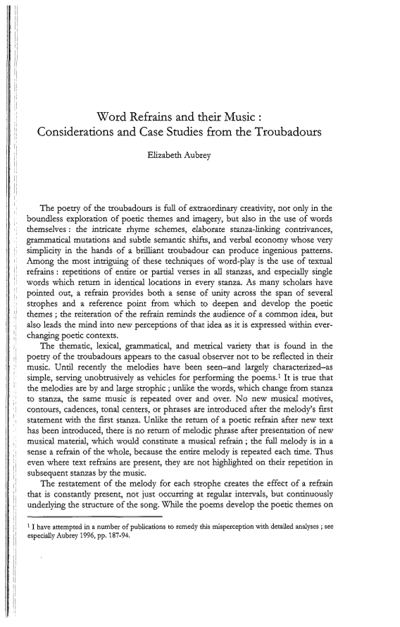 Word Refrains and their Music: Considerations and Case Studies from the Troubadours, Page 1 of 1