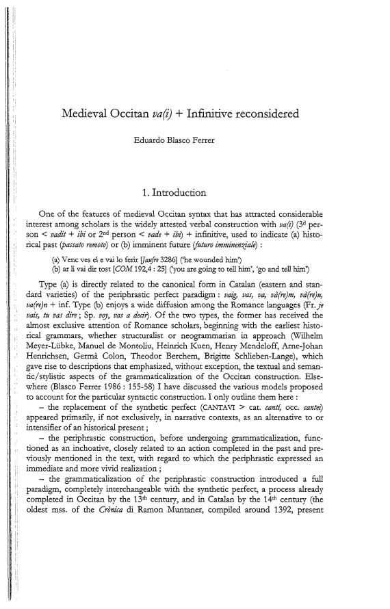 Medieval Occitan va(i) + Infinitive reconsidered, Page 1 of 1