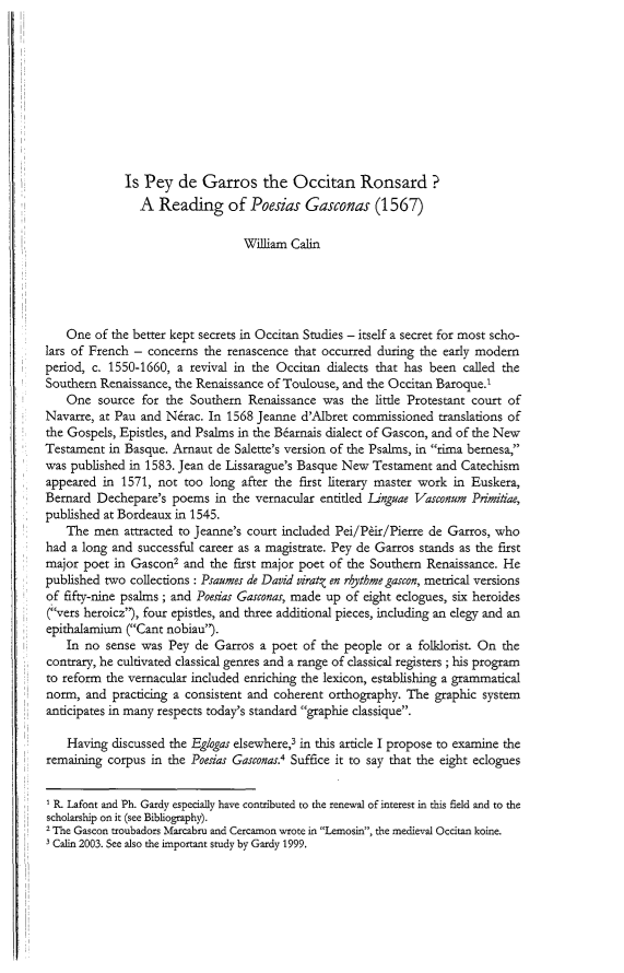 Is Pey de Garros the Occitan Ronsard? A Reading of Poesias Gasconas (1567), Page 1 of 1