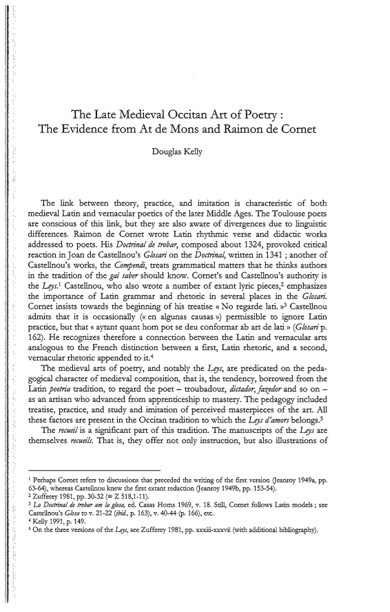 The Late Medieval Occitan Art of Poetry: the Evidence from At de Mons and Raimon de Cornet, Page 1 of 1