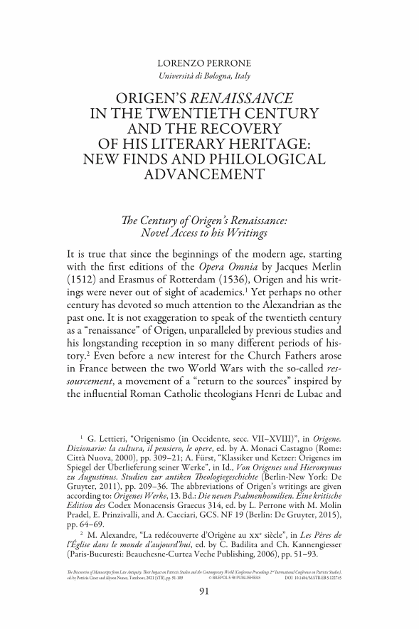 Origen’s Renaissance in the Twentieth Century and the Recovery of his Literary Heritage: New Finds and Philological Advancement, Page 1 of 1