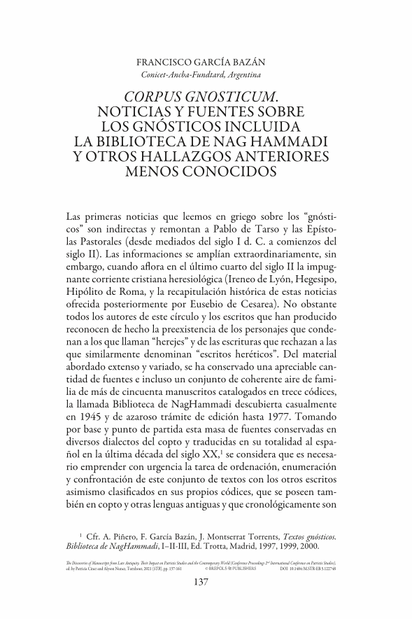 Corpus Gnosticum. Noticias y fuentes sobre los Gnósticos incluida la Biblioteca de Nag Hammadi y otros hallazgos anteriores menos conocidos, Page 1 of 1