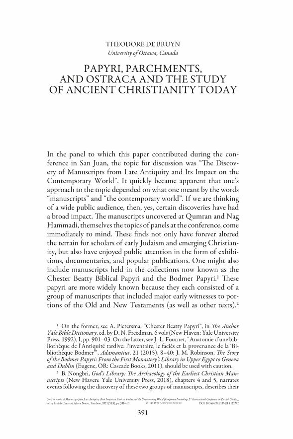 Papyri, Parchments, and Ostraca and the Study of Ancient Christianity Today, Page 1 of 1