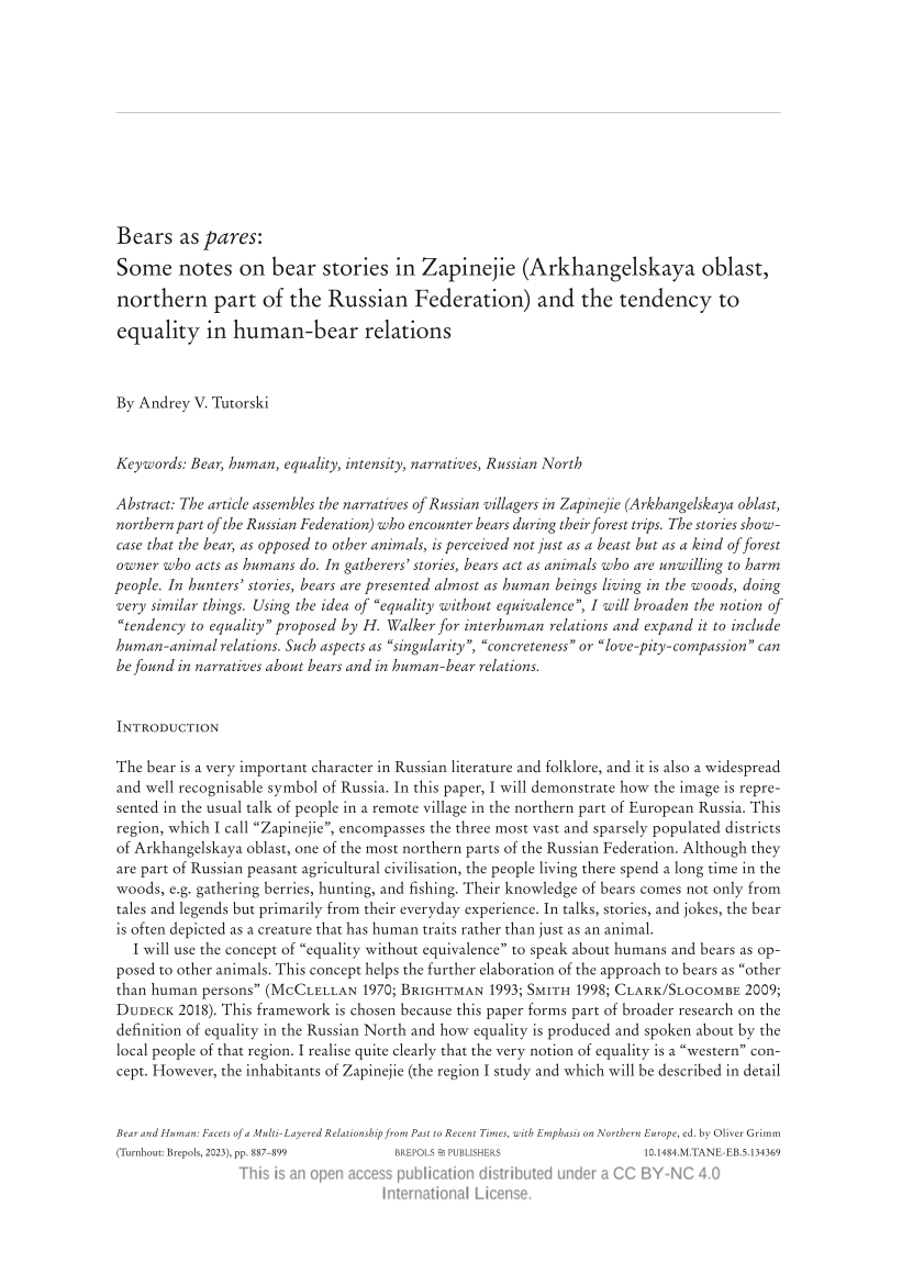 Bears as pares: Some notes on bear stories in Zapinejie (Arkhangelskaya oblast, northern part of the Russian Federation) and the tendency to equality in human-bear relations, Page 1 of 1