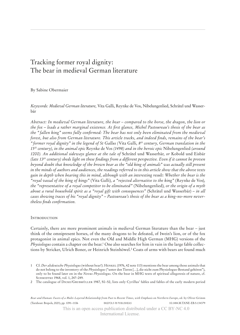 Tracking former royal dignity: The bear in medieval German literature, Page 1 of 1
