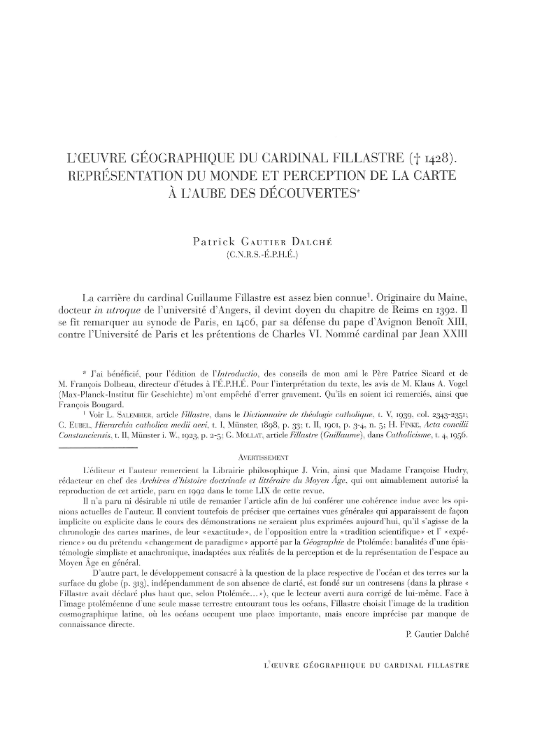 L’œuvre géographique du cardinal Fillastre († 1428). Représentation du monde et perception de la carte à l’aube des découvertes, Page 1 of 1