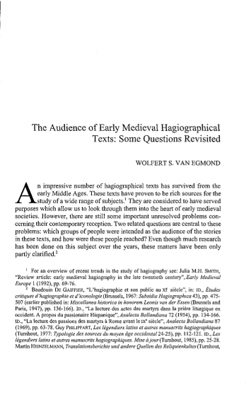 The Audience of Early Medieval Hagiographical Texts, Page 1 of 1