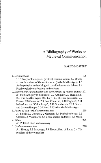 A Bibliography of Works on Medieval Communication, Page 1 of 1