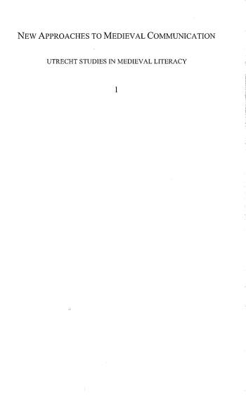 - Publication: New Approaches to Medieval Communication , pp i-viii