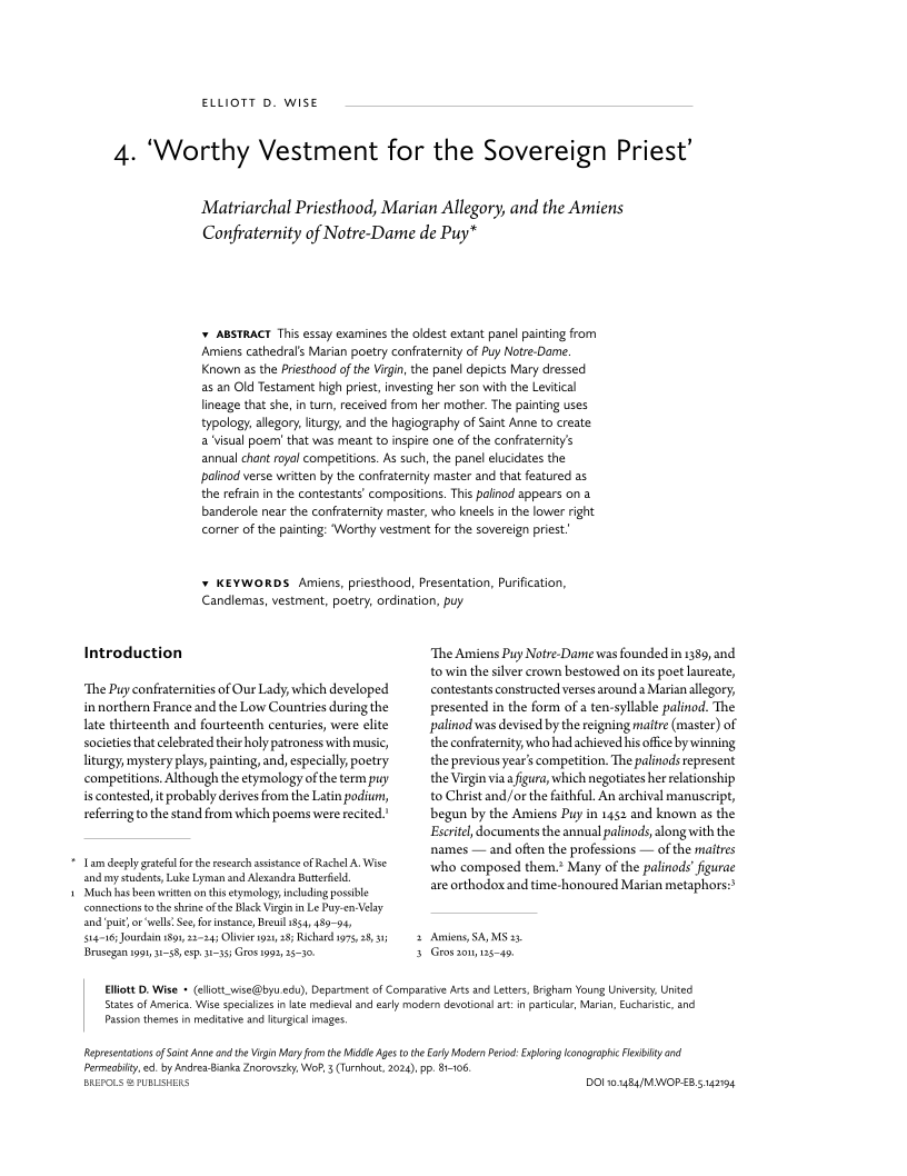 ‘Worthy Vestment for the Sovereign Priest’. Matriarchal Priesthood, Marian Allegory, and the Amiens Confraternity of Notre-Dame de Puy, Page 1 of 1