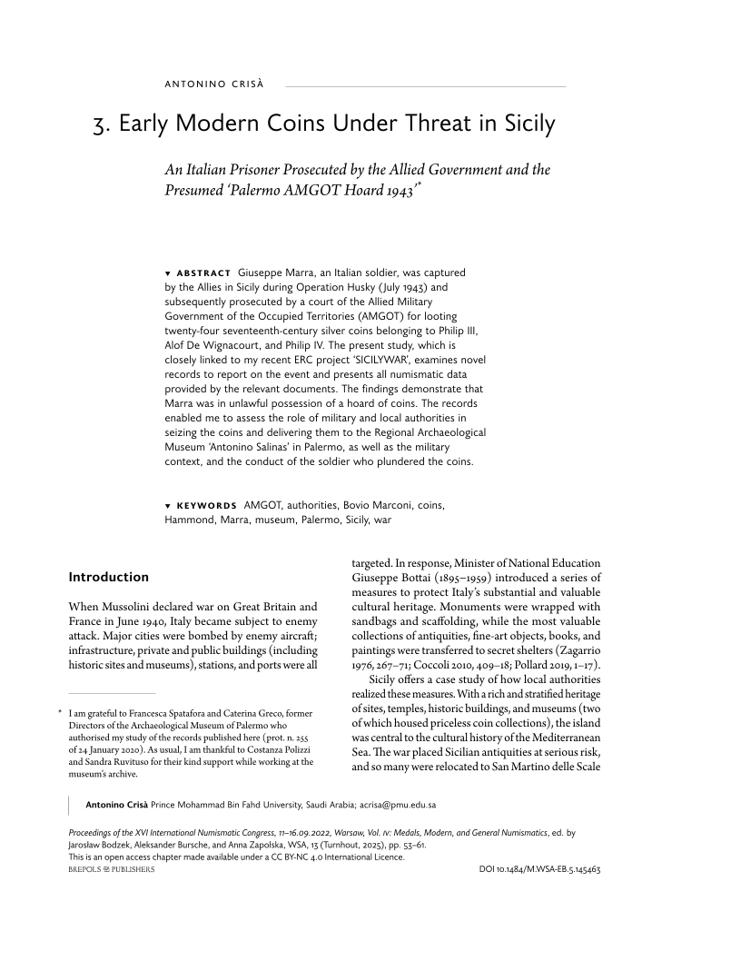 Early-Modern Coins Under Threat in Sicily. An Italian Prisoner Prosecuted by the Allied Government and the Presumed ‘Palermo AMGOT Hoard 1943’, Page 1 of 1
