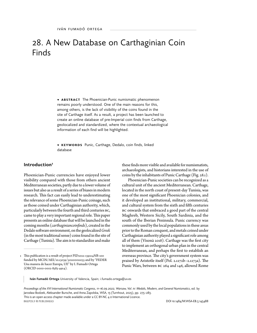 oa A New Database on Carthaginian Coin Finds
