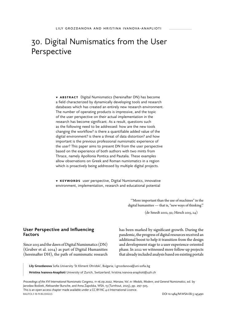 Digital Numismatics (hereinafter DN) has become a field characterized by dynamically developing tools and research databases which has created an entirely new research environment. The number of operating products is impressive, and the topic of the user perspective on their actual implementation in the research has become significant. As a result, questions such as the following need to be addressed: how are the new tools changing the workflow? is there a quantifiable added value of the digital environment? is there a threat of data distortion? and how important is the previous professional numismatic experience of the user? This paper aims to present DN from the user perspective based on the experience of both authors with two mints from Thrace, namely Apollonia Pontica and Pautalia. These examples allow observations on Greek and Roman numismatics in a region which is proactively being addressed by multiple digital projects.
