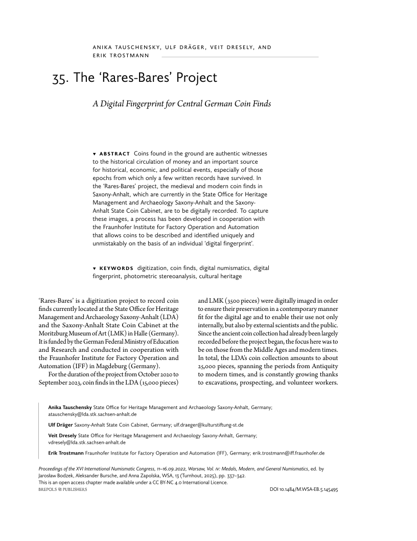 oa The ‘Rares-Bares’ Project. A Digital Fingerprint for Central German Coin Finds