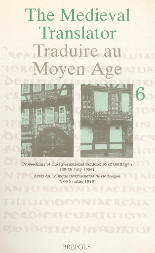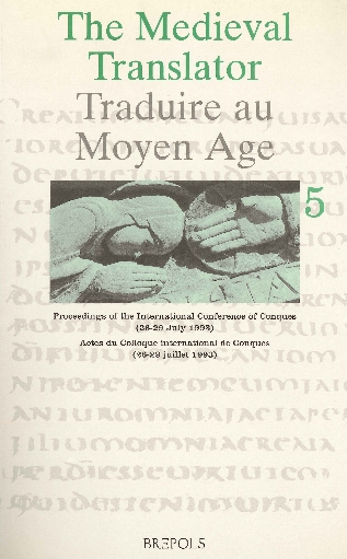 Le premier volume de cette collection chez Brepols est le cinquième d'une série du même nom éditée par Roger Ellis et publiée précédemment chez d'autres éditeurs. Comme ses prédécesseurs il présente les communications faites lors de colloques internationaux et traitant de la théorie et de la pratique de la traduction au moyen âge. Les articles figurant au sommaire de ce volume ont été présentés lors du colloque de Conques les 26-29 juillet 1993. Les articles sont rédigés dans une des langues internationales et sont accompagnés de résumés en anglais. Le fil conducteur est le phénomène de la traduction au moyen âge et la série contient tant les études spécialisées que les approches plus générales. L'article phare du volume 5 (K. Ashley & P. Sheingorn The translations of Sainte Foy: bodies textes and places) par exemple traite de l'interaction entre la transmission littéraire et la translation de reliques en partant du cas de sainte Foy. D'autre part la question des traductions post-médiévales ou contemporaines de textes mediévaux est également abordée.