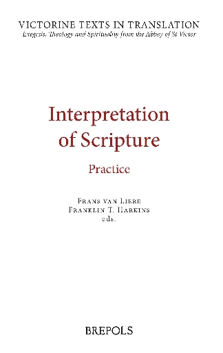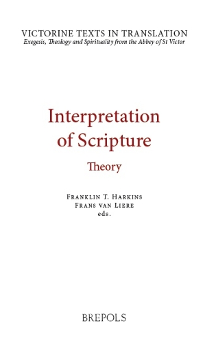 The editors of this volume are Frans van Liere (PhD Groningen; Calvin College) editor of Andrew of St Victor’s commentaries on Samuel and Kings (1996; ET 2010) and on the Twelve Prophets (2007 with Mark Zier) (Corpus Christianorum Continuatio Mediaeualis) and author of An Introduction to the Medieval Bible (2014); and Franklin T. Harkins (PhD Notre Dame; Boston College) author of Reading and the Work of Restoration: History and Scripture in the Theology of Hugh of St Victor (2009).