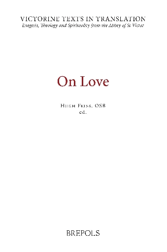 The version of the Rule of St Augustine used at the Abbey of St Victor began with the command to love God above all things and one’s neighbor as oneself. Not surprisingly then love was a pervasive theme in the writings produced there many of which are introduced and translated here : (1) five lyrical essays by Hugh of St Victor (d. 1141): ThePraise of Charity; The Betrothal Gift of the Soul; In Praise of the Spouse; On the Substance of Love; What Truly Should Be Loved ?; (2) On the Four Degrees of Violent Love by Richard of St Victor (d. 1173) which traces the likenesses and differences between romantic love and the love of God; (3) Achard of St Victor (d. 1170) Sermon 5 and two of Adam of St Victor’s sequences are examples of how these authors wove love into their writings ; (4) excerpts from the Microcosmus by Godfrey of St Victor (d. ca. 1195) summarize the central place of love in his humanistic theological anthropology.